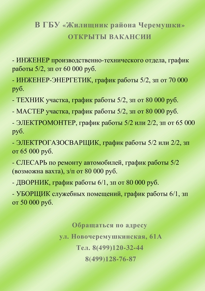 Уважаемые жители района Черемушки!