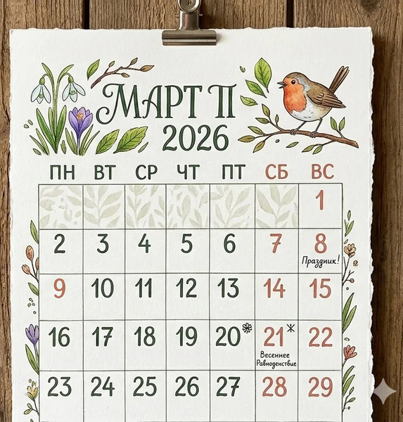 07 марта - 09 марта 2026 года выходные дни.